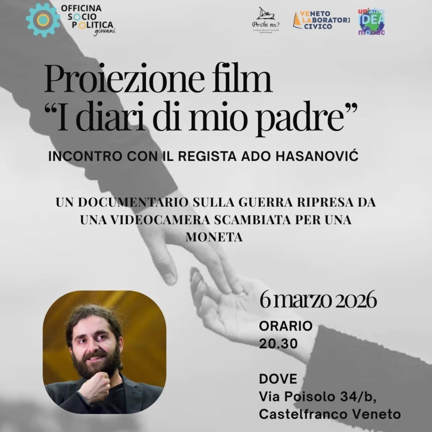 Proiezione film "I diari di mio padre" che tratta di un documentario sulla guerra ripresa da una videocamera scambiata per una moneta, inoltre ci sarà l'incontro con il regista Ado Hasanovic