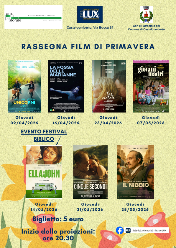 Tutti i giovedì dei mesi di aprile e maggio vi aspetta la Rassegna film di primavera al Cinema Lux a Castelgomberto!