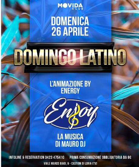 Al Movida si rinnova l'appuntamnto domedicale con Domingo Latino per una serata calliente a ritmo di musica latina. A far ballare i partecipanti ci penseranno MAURO DJ e la sua musica.
