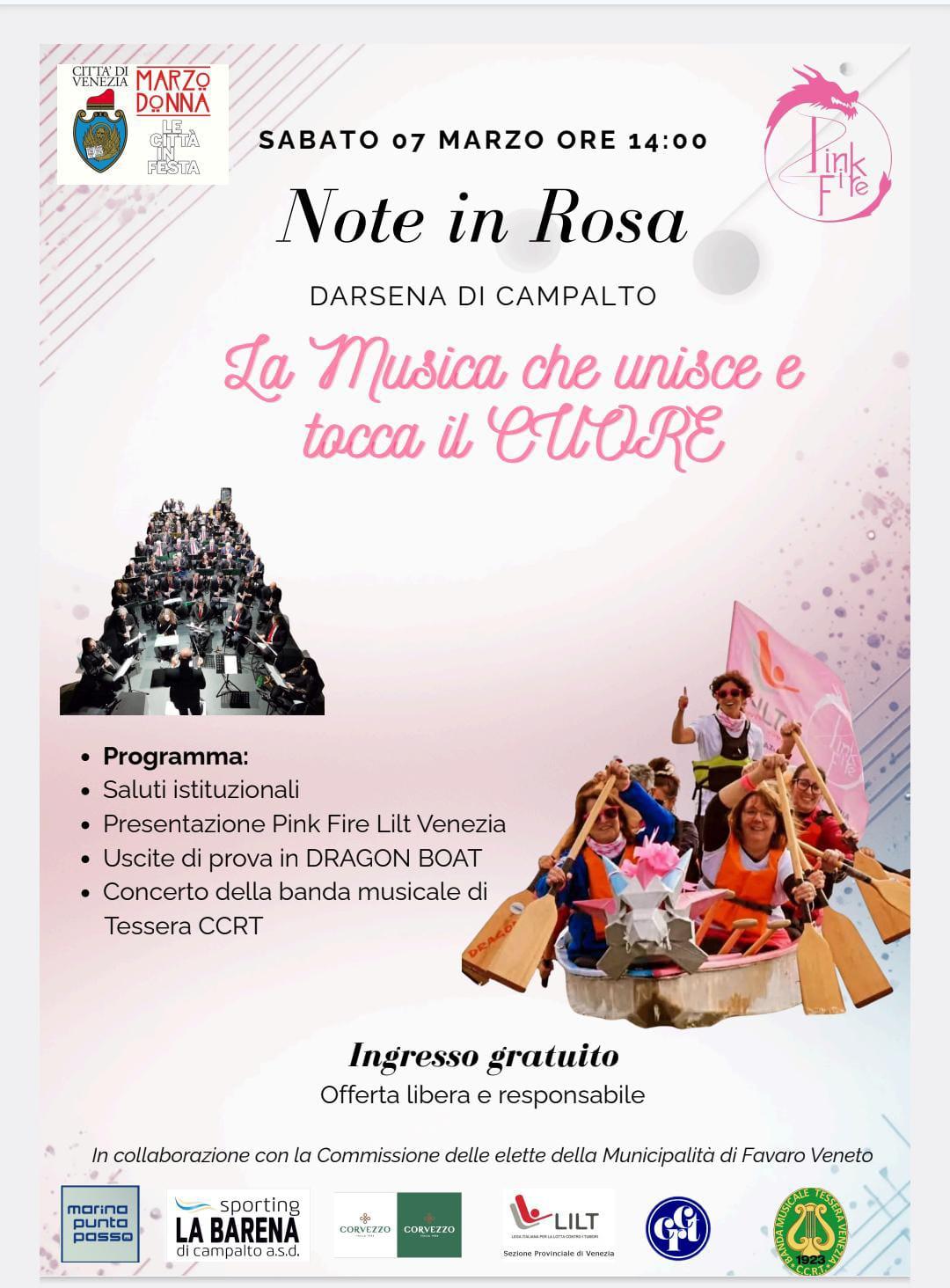 Promosso dalla squadra dragonboat di donne in rosa Pink Fire Lilt Venezia, che si terrà sabato 07 marzo ore 14:00, presso la Darsena di Campalto in via Passo Campalto 124.
