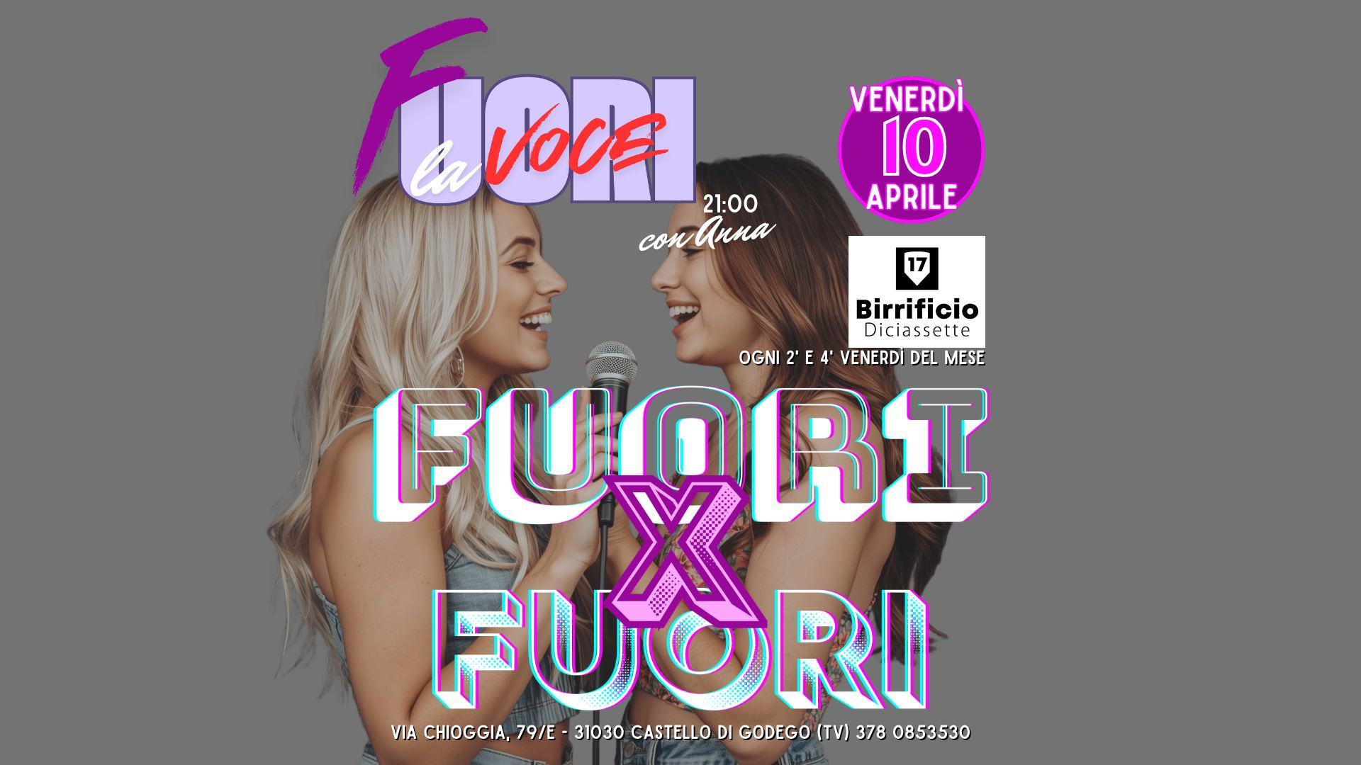 Il Birrificio Diciassette di Castello di Godego ospita il debutto del format FuoriXFuori. Durante la serata Fuori la Voce, condotta da Anna, il pubblico sarà il vero protagonista grazie a un microfono aperto che permetterà a chiunque di cantare i propri brani del cuore in un clima di festa e spensieratezza. L'appuntamento abbina l'energia delle performance collettive a una vasta scelta di birre artigianali, creando un punto di ritrovo ideale per chi desidera una serata di musica e amicizia.