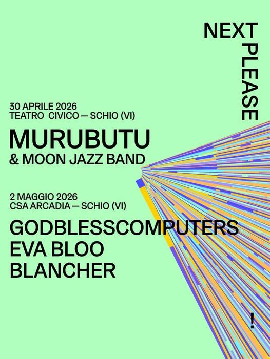 Sabato 2 maggio 2026 presso C.S.A. Arcadia di Schio ci sarà live di GODBLESSCOMPUTERS, EVA BLOO e BLANCHER.