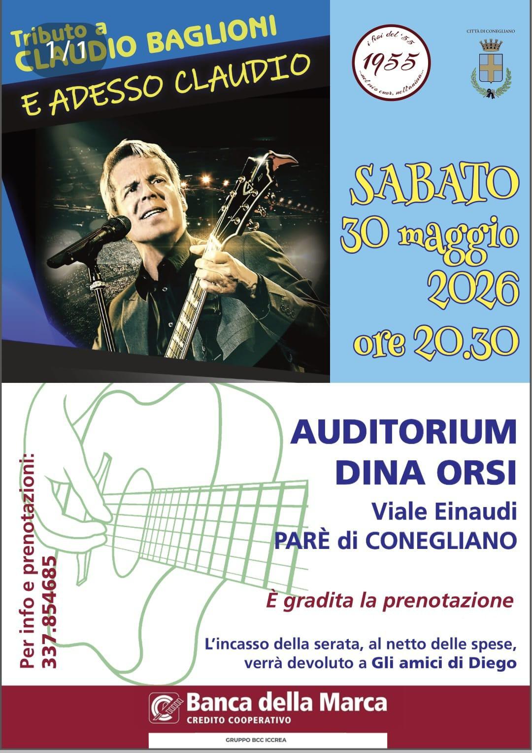 Sabato 30 Maggio 2026 si terrà presso l'Auditorium Dina Orsi di Parè di Conegliano l'evento "E adesso Claudio", un importante tributo a Claudio Baglioni.