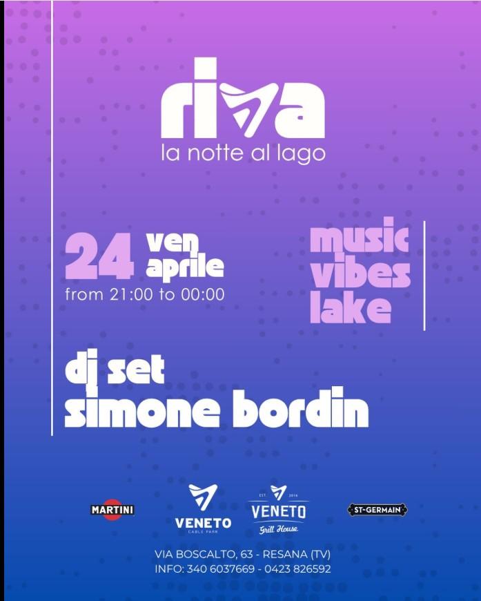 Dalle ore 21:00 fino a mezzanotte, la serata sarà animata dal DJ set di Simone Bordin, offrendo la colonna sonora perfetta per sorseggiare un drink e godersi le vibrazioni della notte a bordo lago.