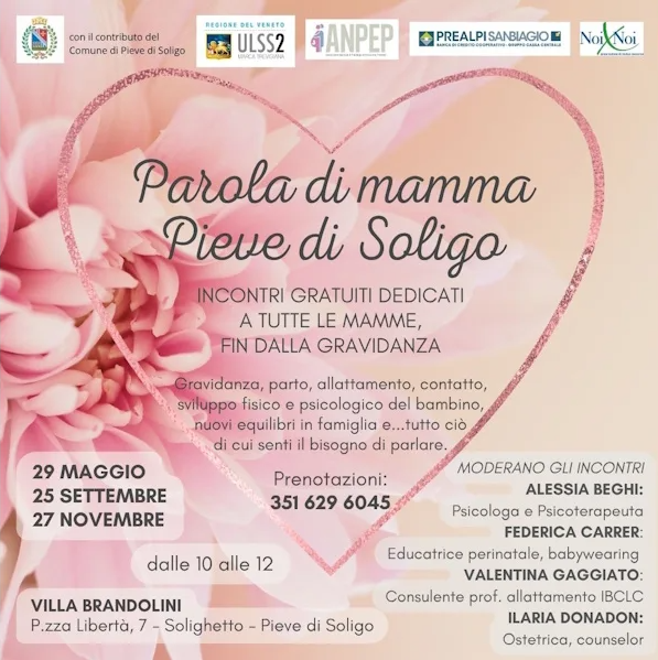 In partenza il 29 Maggio, il primo appuntamento realizzato da ANPEP (Associazione Nazionale di Psicologia ed Educazione Prenatale), con il sostegno di Banca Prealpi SanBiagio e l’Associazione NoixNoi, con il patrocinio del Comune di Pieve di Soligo e l’ULSS 2 Marca trevigiana.