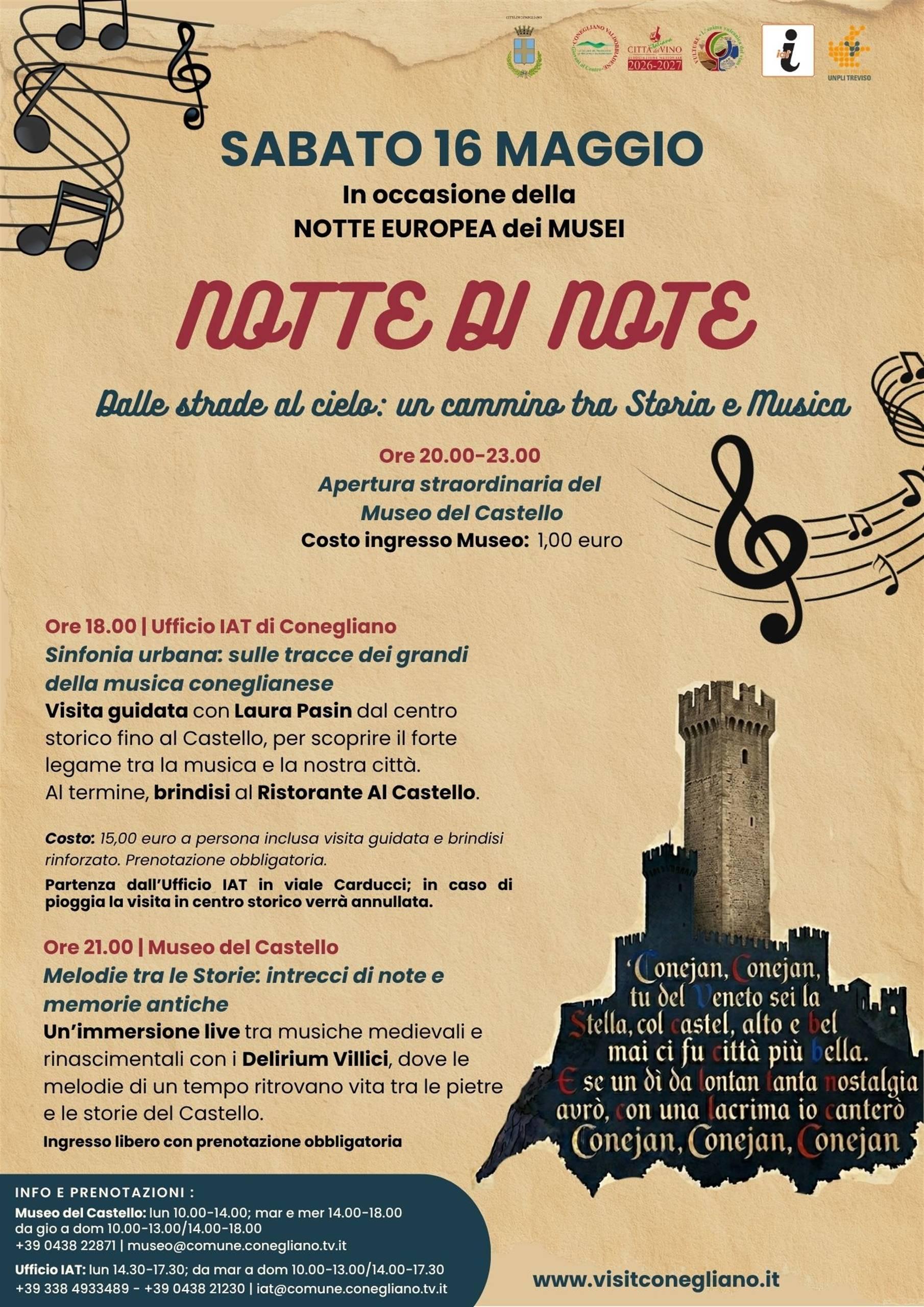 In occasione della Notte Europea dei Musei, sabato 16 maggio Conegliano propone l'evento "Notte di Note - Dalle strade al cielo", un suggestivo cammino tra storia e musica.
