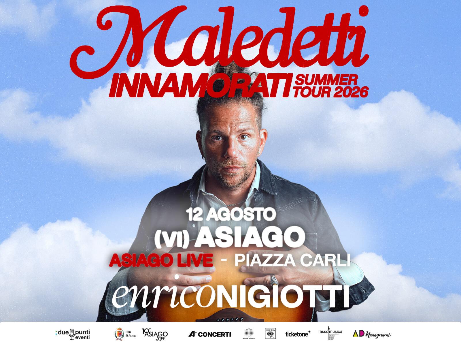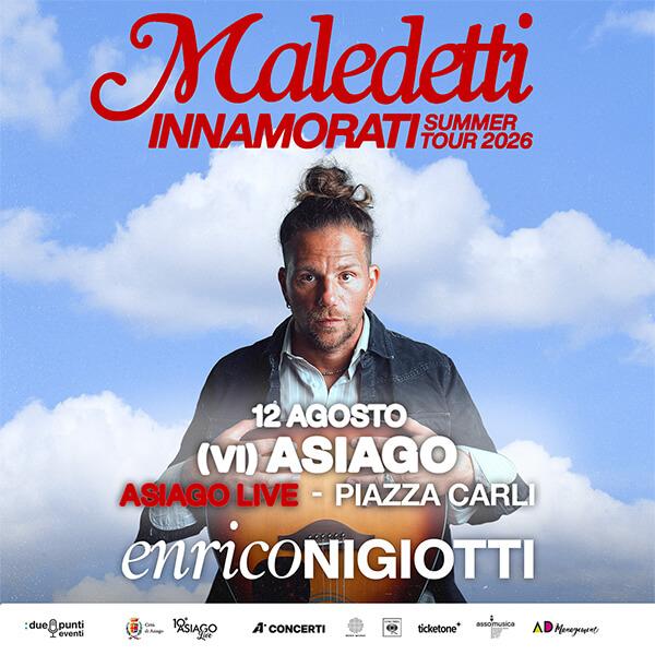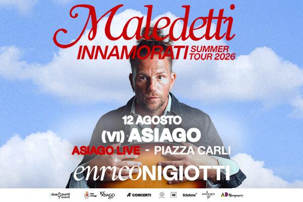 Mercoledì 12 agosto in Piazza Carli alle ore 21.00 prosegue la decima edizione della rassegna Asiago Live con Enrico Nigiotti