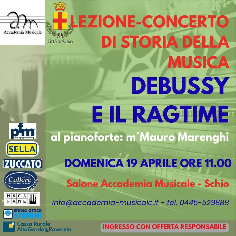 Il concerto esplora l’incontro tra la musica di Claude Debussy e il ragtime, genere nato negli Stati Uniti tra Otto e Novecento e caratterizzato da ritmi sincopati che hanno influenzato profondamente il linguaggio musicale del tempo.