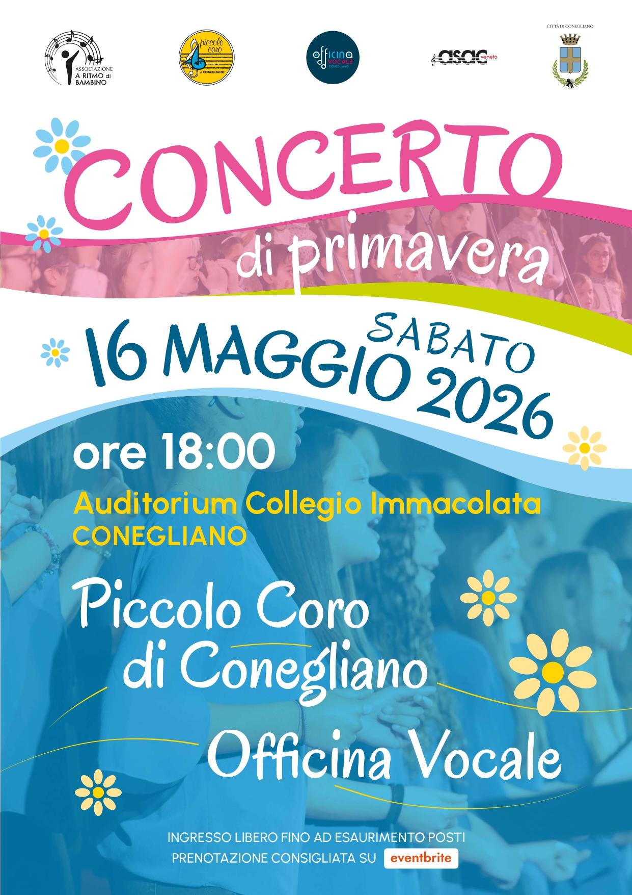 Sabato 16 maggio alle ore 18:00, l'Auditorium del Collegio Immacolata di Conegliano aprirà le sue porte per il tradizionale Concerto di Primavera, un'occasione speciale per lasciarsi trasportare dalle voci del Piccolo Coro di Conegliano e dell'Officina Vocale.