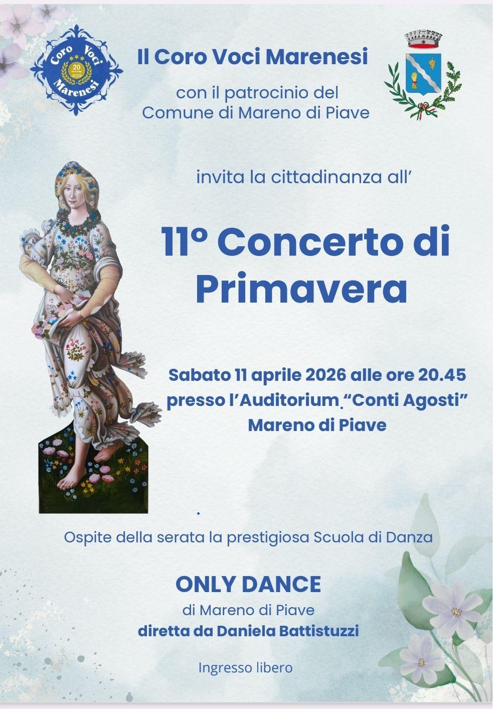 Sabato 11 aprile alle ore 20.45 presso l'Auditorium Conti Agosti di Mareno di Piave si tiene l'11^ Concerto di Primavera.