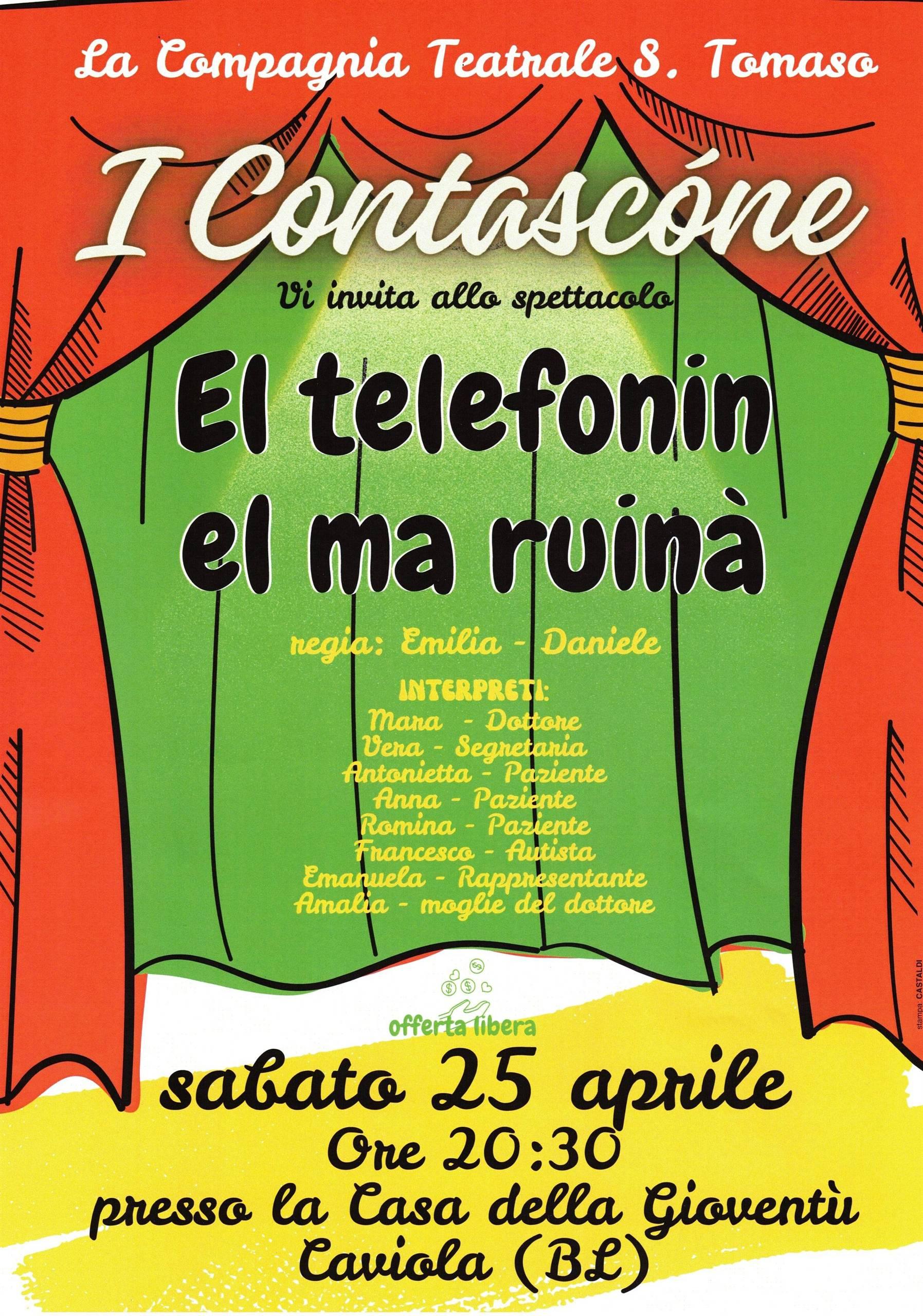 La Compagnia Teatrale S.Tomaso I Contascòne vi invita allo spettacolo teatrale El telefonin el ma ruinà regia di Emilia e Daniele