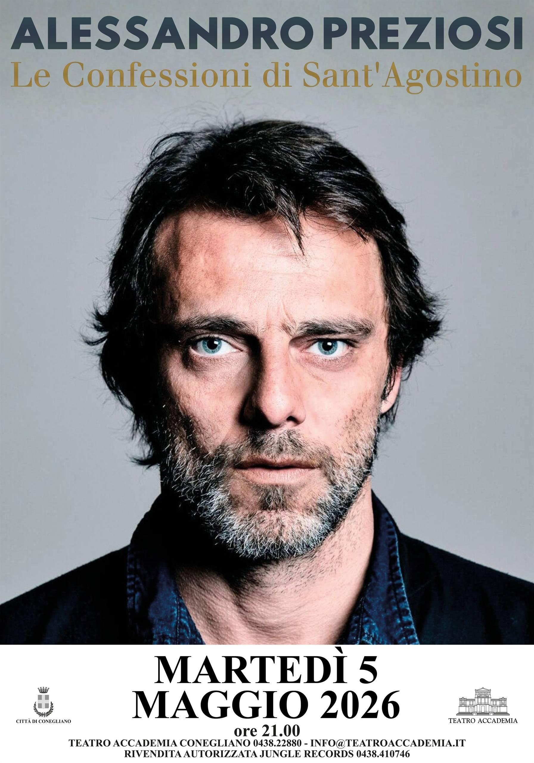 Il Teatro Accademia di Conegliano si prepara ad accogliere uno degli appuntamenti più intensi della stagione: martedì 5 maggio alle ore 21:00, Alessandro Preziosi porterà in scena "Le confessioni di S. Agostino". In questo atteso recital, l’attore dà corpo e voce a un Agostino immerso nei suoi pensieri più intimi, offrendo un’interpretazione magistrale che coniuga rigore e spontaneità. L’adattamento curato da Tommaso Mattei attraversa i momenti salienti dell’opera fino alla struggente epifania della conversione, in un flusso ritmico capace di tenere il pubblico sospeso tra parola e silenzio, tra ragione e sentimento.