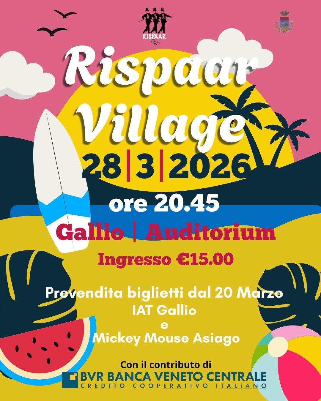 Gallio si prepara ad accogliere uno degli appuntamenti più attesi della stagione: Rispaar Village, in programma sabato 28 marzo 2026 alle ore 20.45 presso l’Auditorium di Gallio.