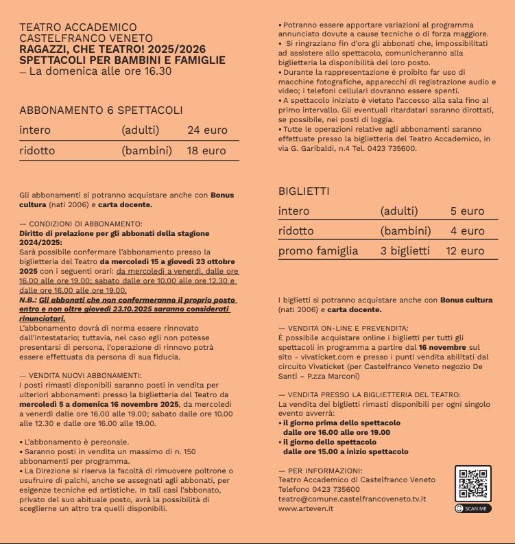 Torna la rassegna “Ragazzi che teatro!”, un appuntamento speciale dedicato ai bambini e alle famiglie. In collaborazione con ARTEVEN e il Circuito Multidisciplinare Regionale, questa rassegna offre storie, emozioni e spettacoli pensati per far vivere il teatro a misura di bambino.