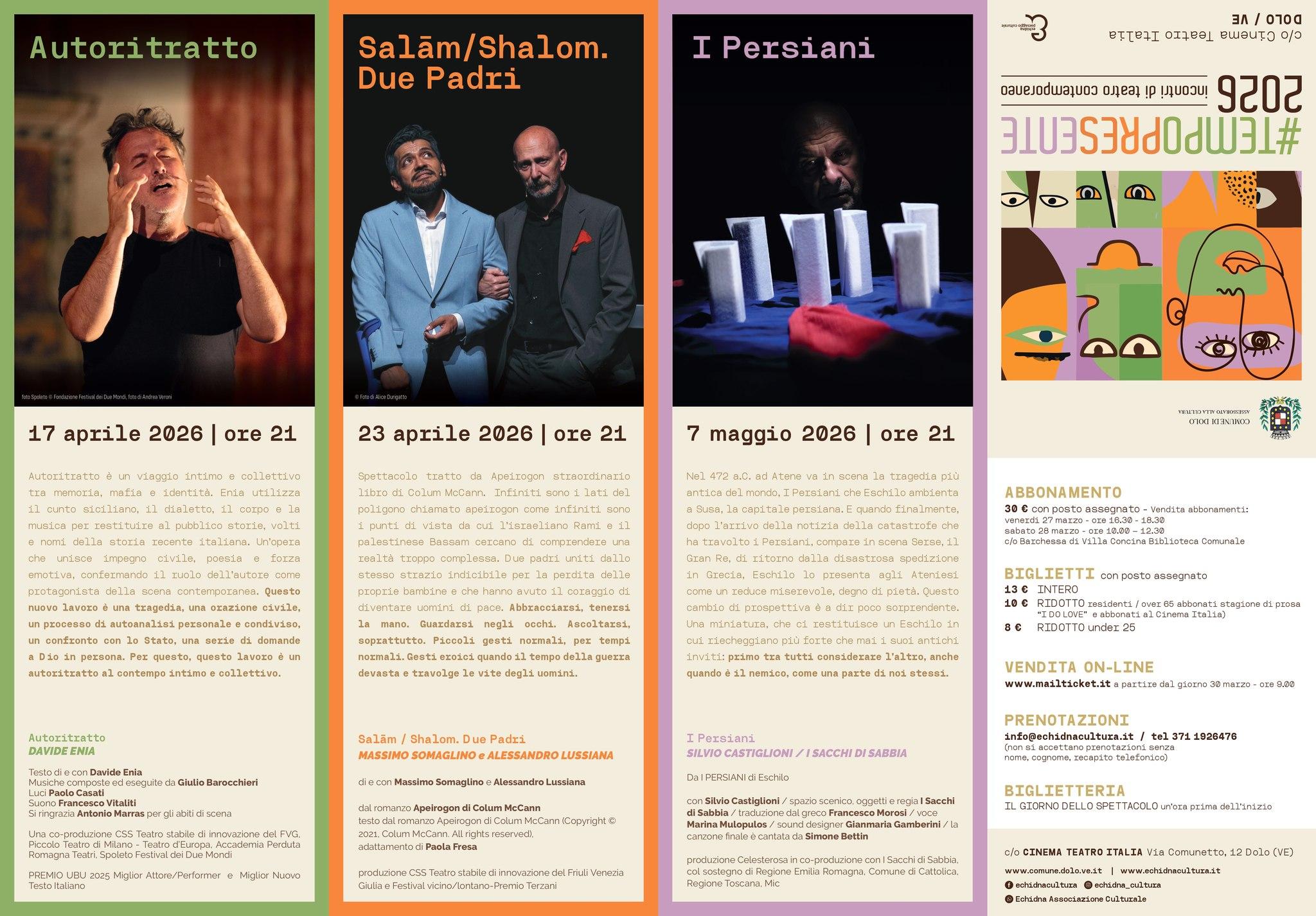 Il teatro a Dolo apre una nuova prospettiva con #TEMPOPRESENTE, rassegna dedicata ai linguaggi del teatro contemporaneo promossa dal Comune di Dolo – Assessorato alla Cultura, con la direzione artistica di Cristina Palumbo e la collaborazione di Echidna Associazione Culturale.