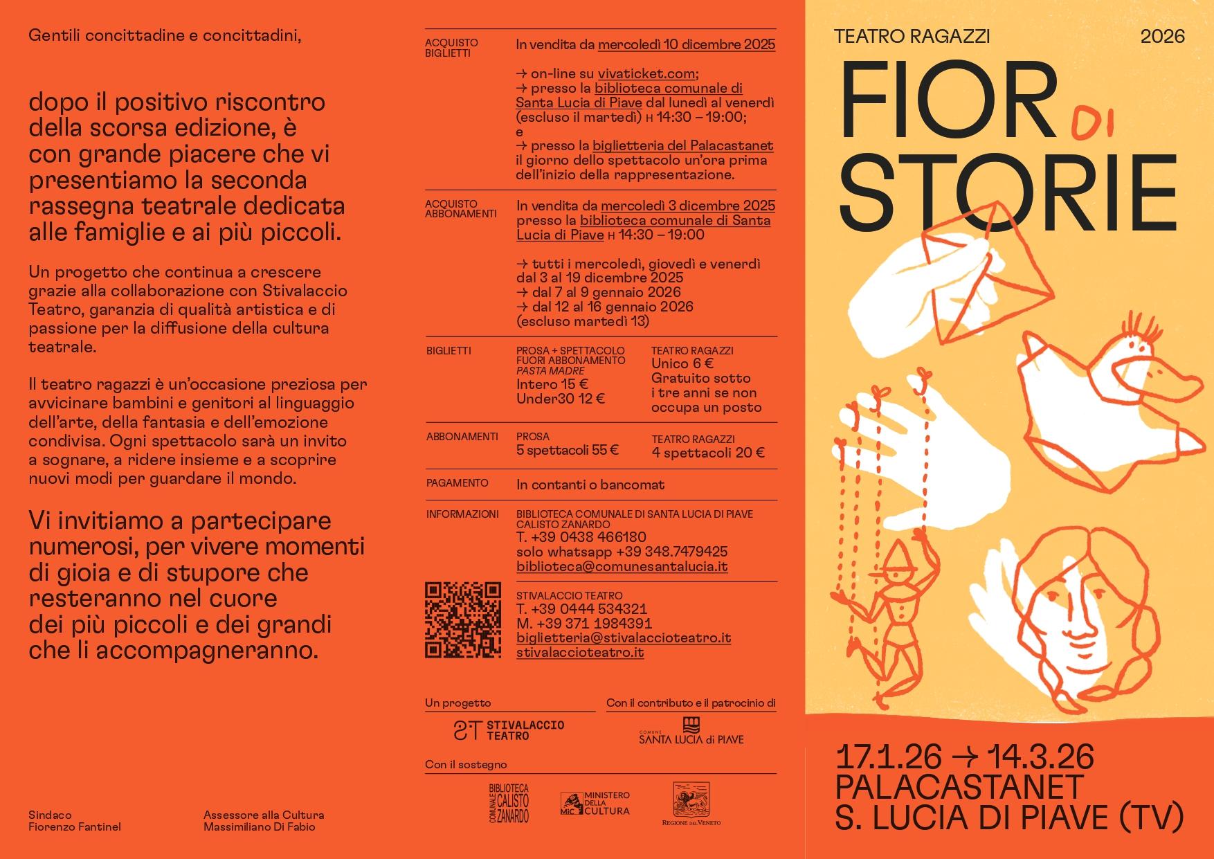 Dopo il positivo riscontro della scorsa edizione, torna finalmente a Santa Lucia di Piave la rassegna dedicata alle famiglie e ai più piccoli, nata dalla collaborazione con Stivalaccio Teatro. Il palcoscenico del Palacastanet si trasforma in un luogo magico dove bambini e genitori possono condividere l'emozione del teatro.
