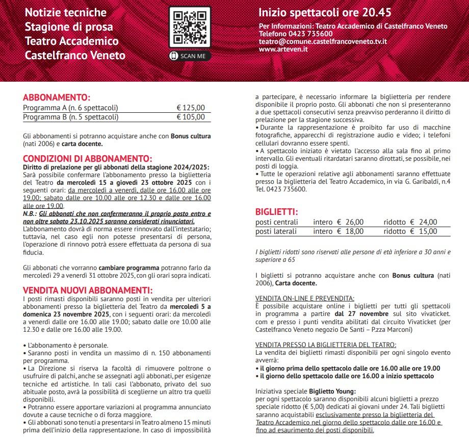 Nono spettacolo del nuovo anno della stagione teatrale di Castelfranco Veneto 2025-2026.