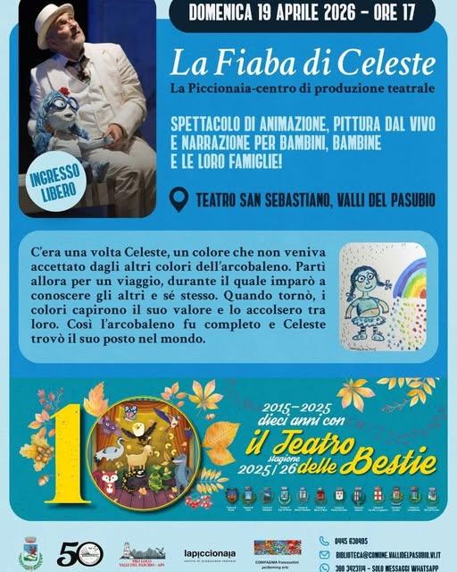 Domenica 19 aprile 2026 alle ore 17 presso il Teatro San Sebastiano di Valli del Pasubio ci sarà uno spettaccolo di animazione, pittura dal vivo e narrazione per bambini, bambine e le loro famiglie!