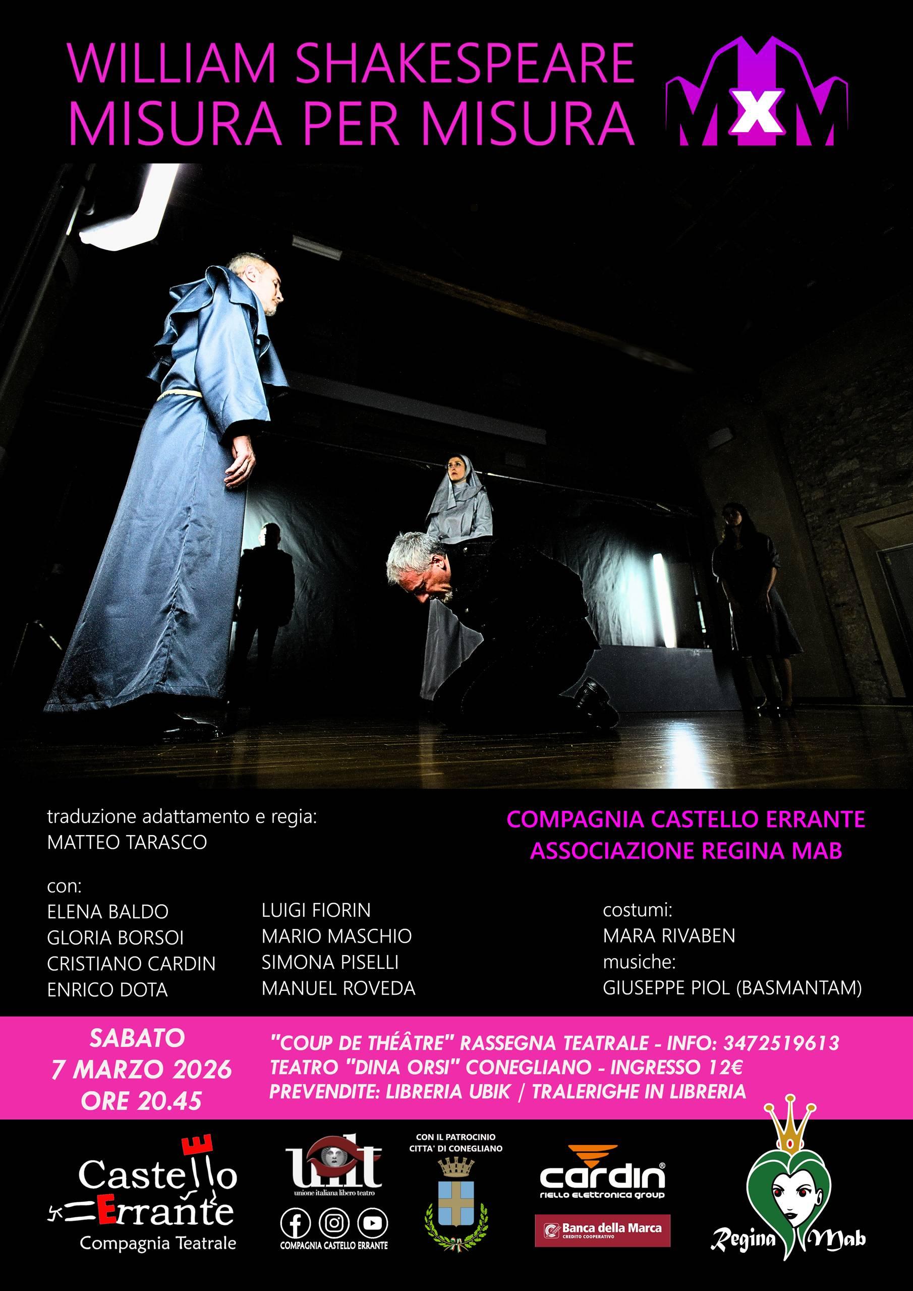 La Compagnia Castello Errante presenta la rassegna teatrale invernale 2026 dal titolo "Coup de Théâtre", un ciclo composto da tre appuntamenti che si terranno presso il Teatro Dina Orsi di Conegliano alle ore 20:45.