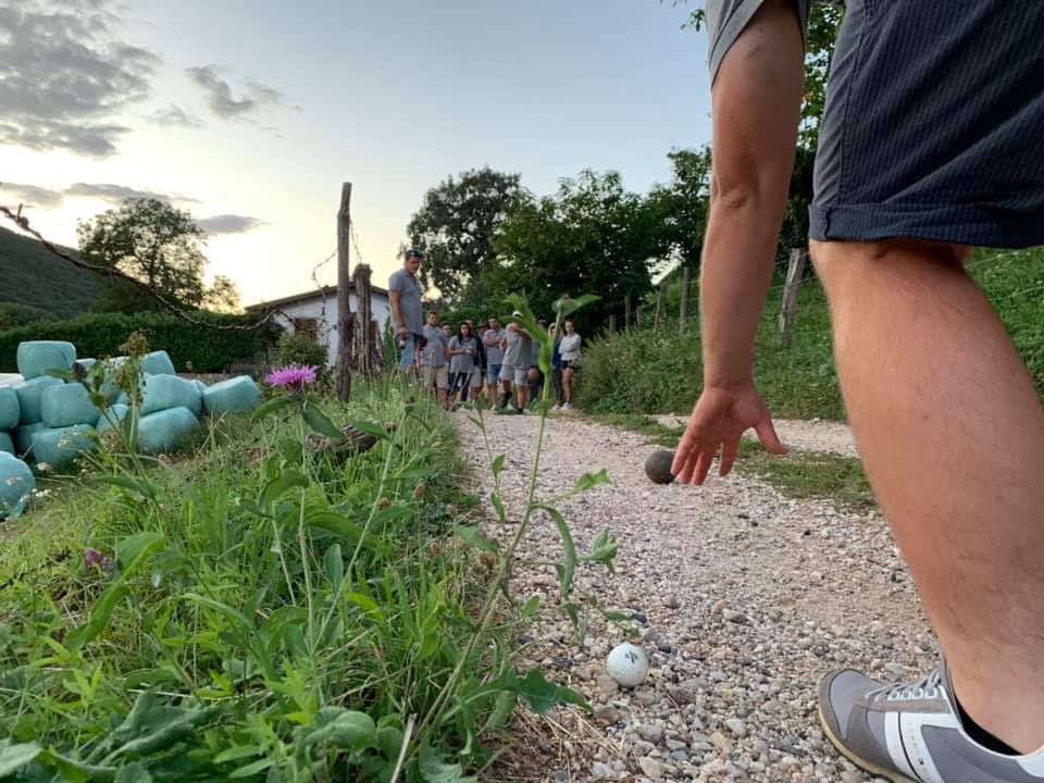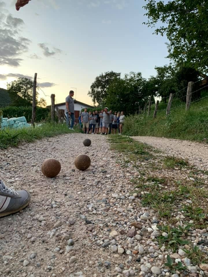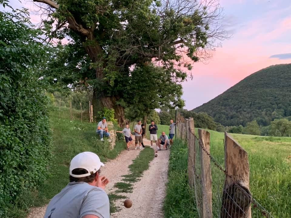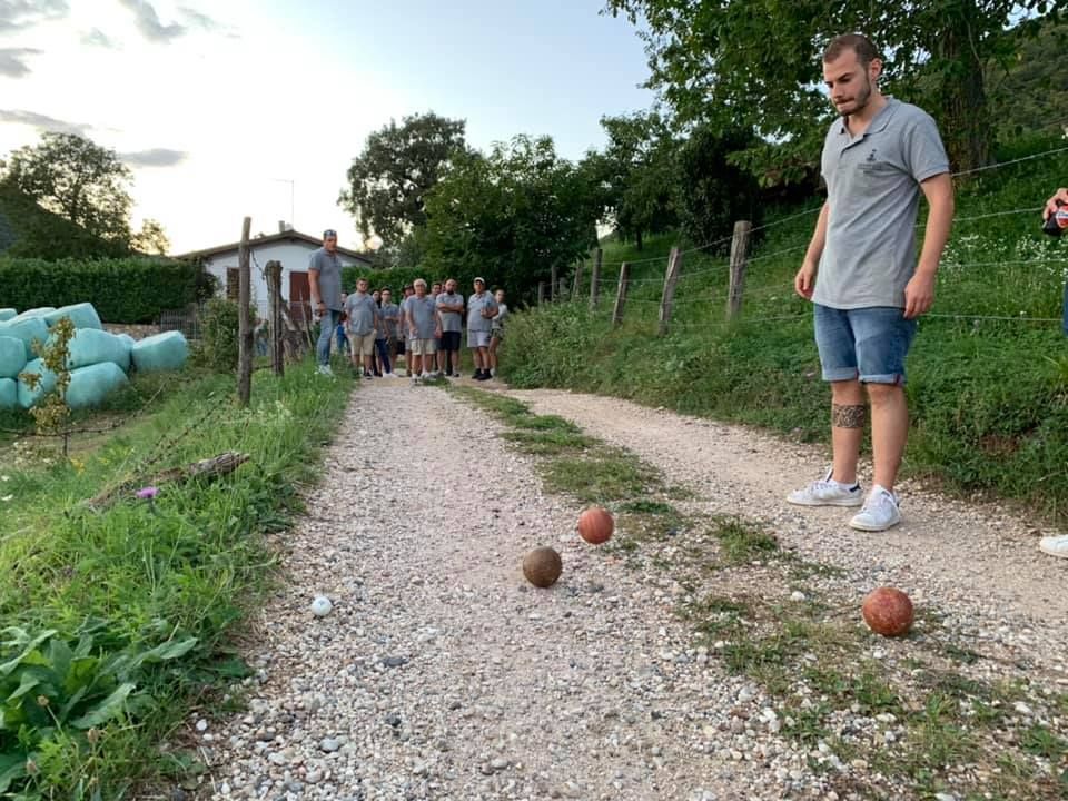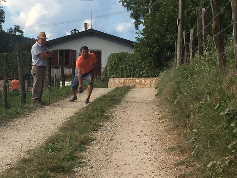 Gioco praticato nel veronese, consiste in una singolare gara di bocce giocata lungo le strade del paese e delle contrade. Un tempo, dopo aver sorteggiato le squadre, si partiva dalla chiesa e si giocava avanzando ogni volta il tratto corrispondente ad una giocata, superando, per quanto possibile, anche salite sfruttando gli slarghi che si aprivano ai lati della strada. Lungo il percorso, in piccole nicchie praticate nei muri di cinta, era stato ricavato un nascondiglio per le bottiglie di vino che accompagnavano immancabilmente il gioco. Il cibo e il vino sono due elementi indissolubilmente legati al gioco: le partite infatti possono durare svariate ore e per questo è indispensabile giocare nei pressi di osterie e taverne che assicurino un adeguato “rifornimento” di libagioni.