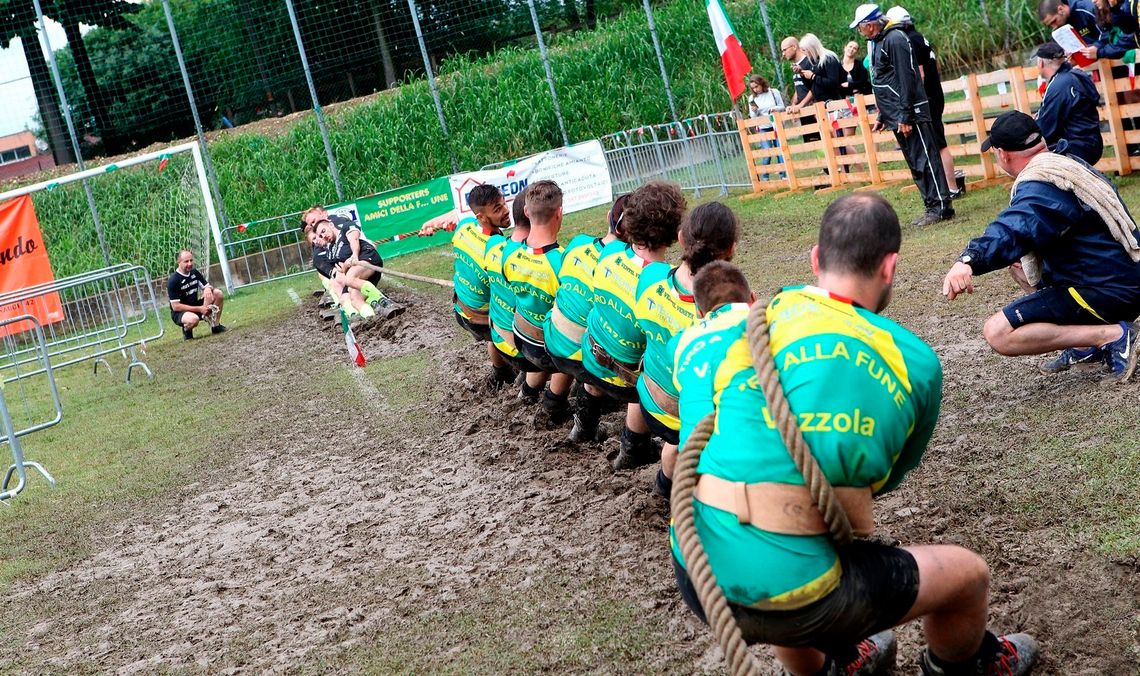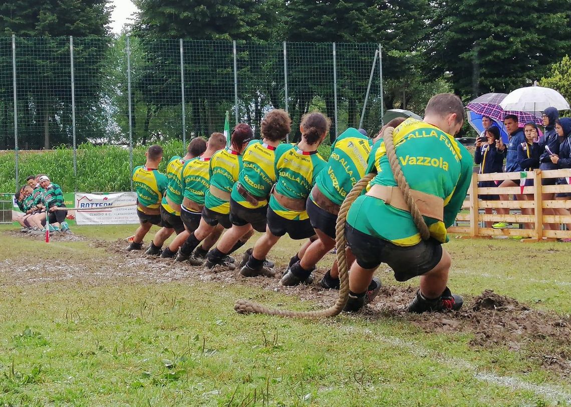 E’ una sfida a squadre composte da 8 giocatori ciascuna, detti tiratori, con l’obiettivo di trascinare gli avversari oltre la linea di centro segnata sul terreno.