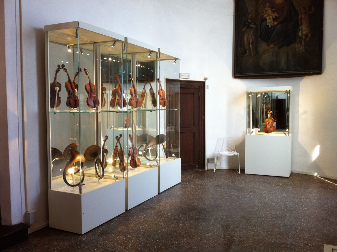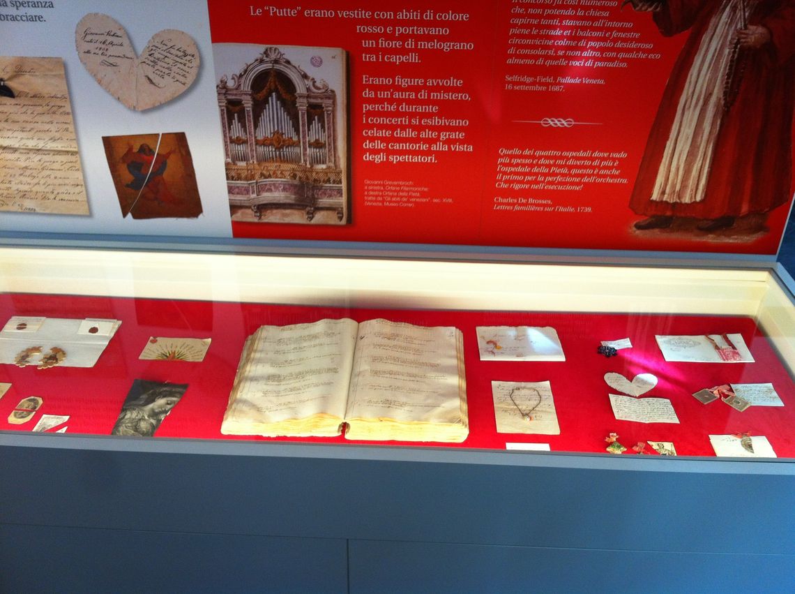 la preziosa collezione di strumenti musicali barocchi all'Antico Ospedale della Pietà è esposta nella suggestiva cornice del palco dove i nobili assistevano ai concerti. Il sodalizio artistico tra Antonio Vivaldi e l'Antico Ospedale della pietà fu duraturo e proficuo. Il celebre violinista e compositore veneziano rimase infatti al servzio della Pietà per quasi quarant'anni, ricoprendo vari incarichi come maestro di Violino, maestro di Choro ed infine maestro di concerti, con il compito di istruire le figlie del Choro, di comporre musica originale e di dirigere le musiche strumentali eseguite durante le celebrazioi liturgiche. Di rara bellezza è il gruppo di strumenti realizzati da celebri liutai come Matteo Goffriller, Andrea a Pietro Guarnieri.