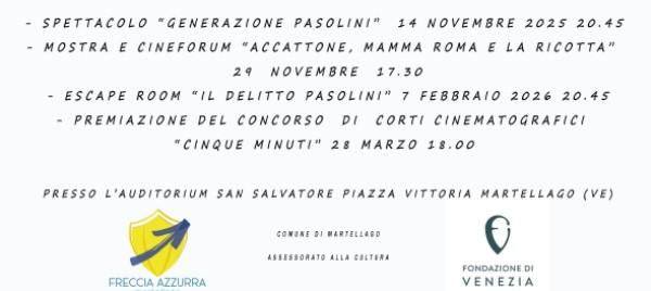 La regia della rassegna per Martellago è curata da Freccia Azzurra: un ringraziamento speciale a per la sua profonda conoscenza dell’opera di Pasolini.